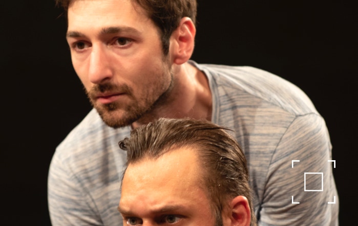 Cette adaptation de la pièce la plus connue de Gombrowicz (assumée comme une réécriture de Hamlet) est en réalité une performance d’1h30 dans laquelle on voit les acteurs de la troupe de La Luzège en Corrèze inventer leur partition physique (le geste scénique) avec la méthode polonaise basée sur la forme et le contraste. Cette méthode reprend des éléments de la théorie de la forme pure du peintre et auteur S.Witkiewicz, et s’inscrit dans la tradition du metteur en scène polonais Tadeusz Kantor. L’idée de «performance» traduit la tentative de repenser les modes de production au Théâtre en proposant d’offrir au public, pour un soir, le «processus transparent» de la création : sur le plateau, la metteure en scène dirige les sept comédien.nes en jeu et les guide vers le grotesque des situations tout en partant de leur propositions personnelles. La disposition circulaire permet d’abolir un moment la séparation scène/salle, de casser l’illusion d’un spectacle « clé en main ».